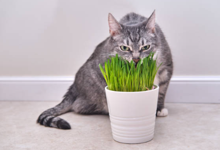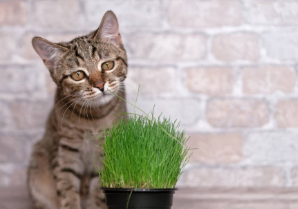 캣 그라스는 고양이가 먹을 수 있는 풀로, 귀리나 보리, 호밀 등과 같은 식용곡물의 잎사귀를 말한다. 캣 그라스는 고양이에게 다음과 같은 장점을 가지고 있다.